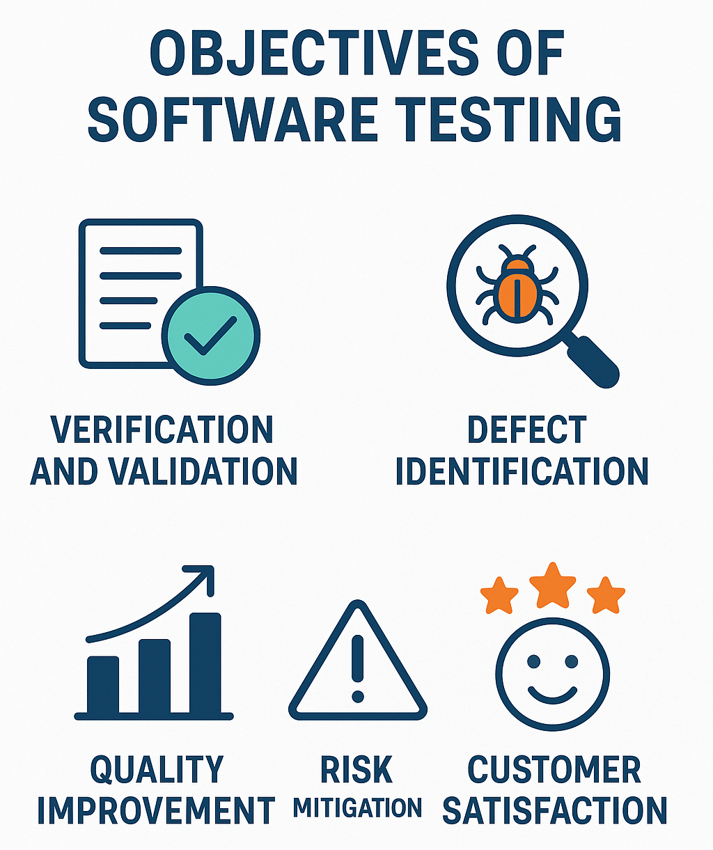 - This is about finding errors or bugs in the software, like spotting a mistake in your code. The goal is to catch these issues early so they can be fixed before the software is released to users.