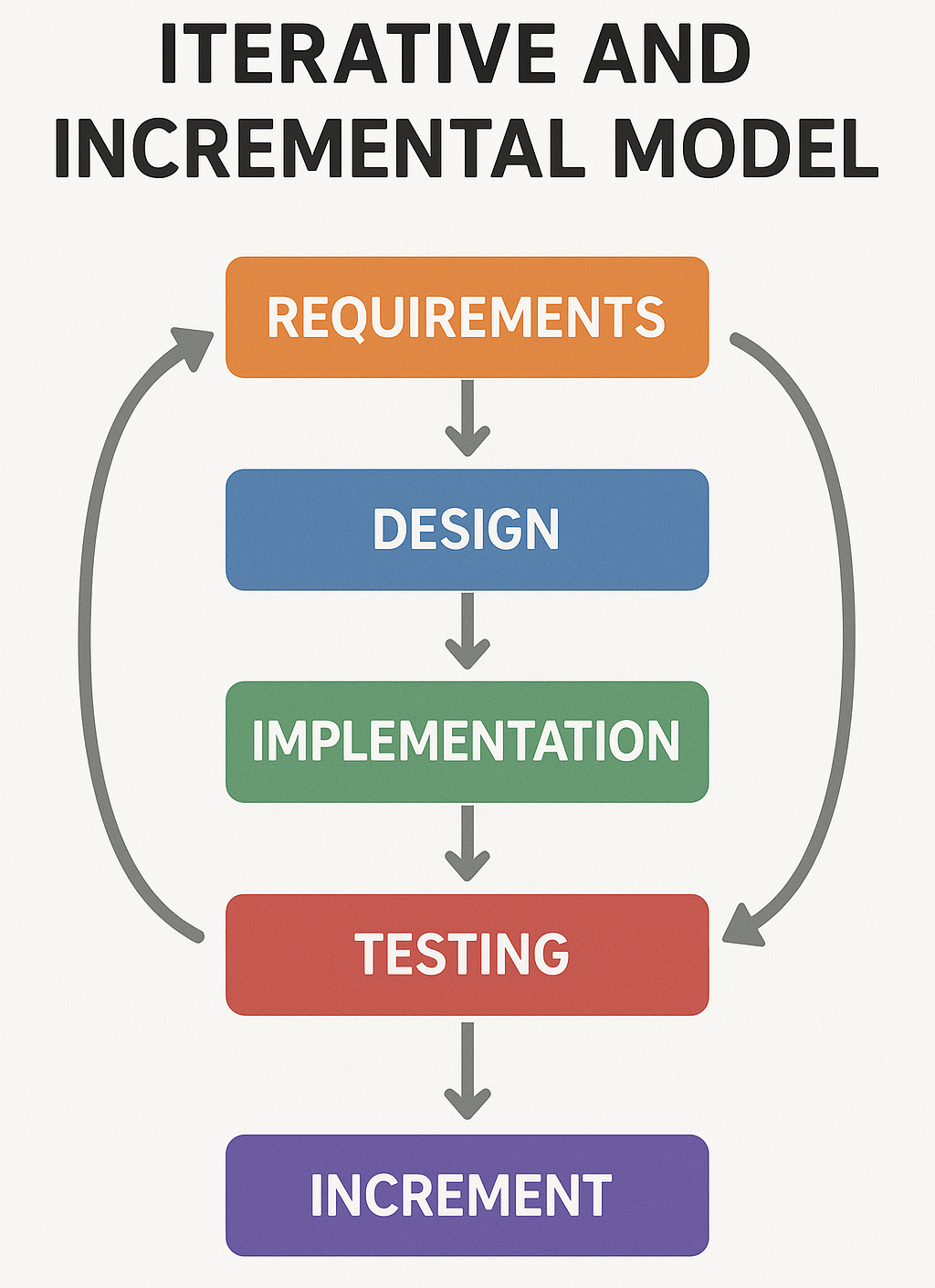 The Iterative and Incremental Model is a flexible approach to software development where the project is broken into smaller parts, and these parts are developed and refined over several cycles or iterations.