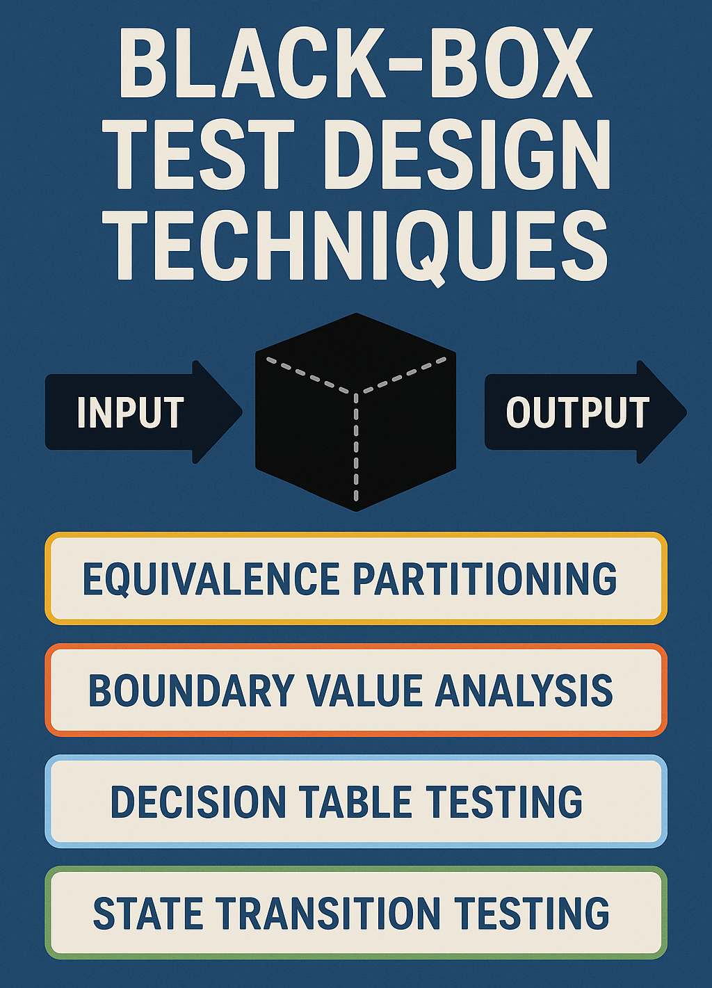 - Black-box test design techniques focus on testing the software without knowledge of its internal code or structure. Test cases are derived from the functional or non-functional specifications of the software.