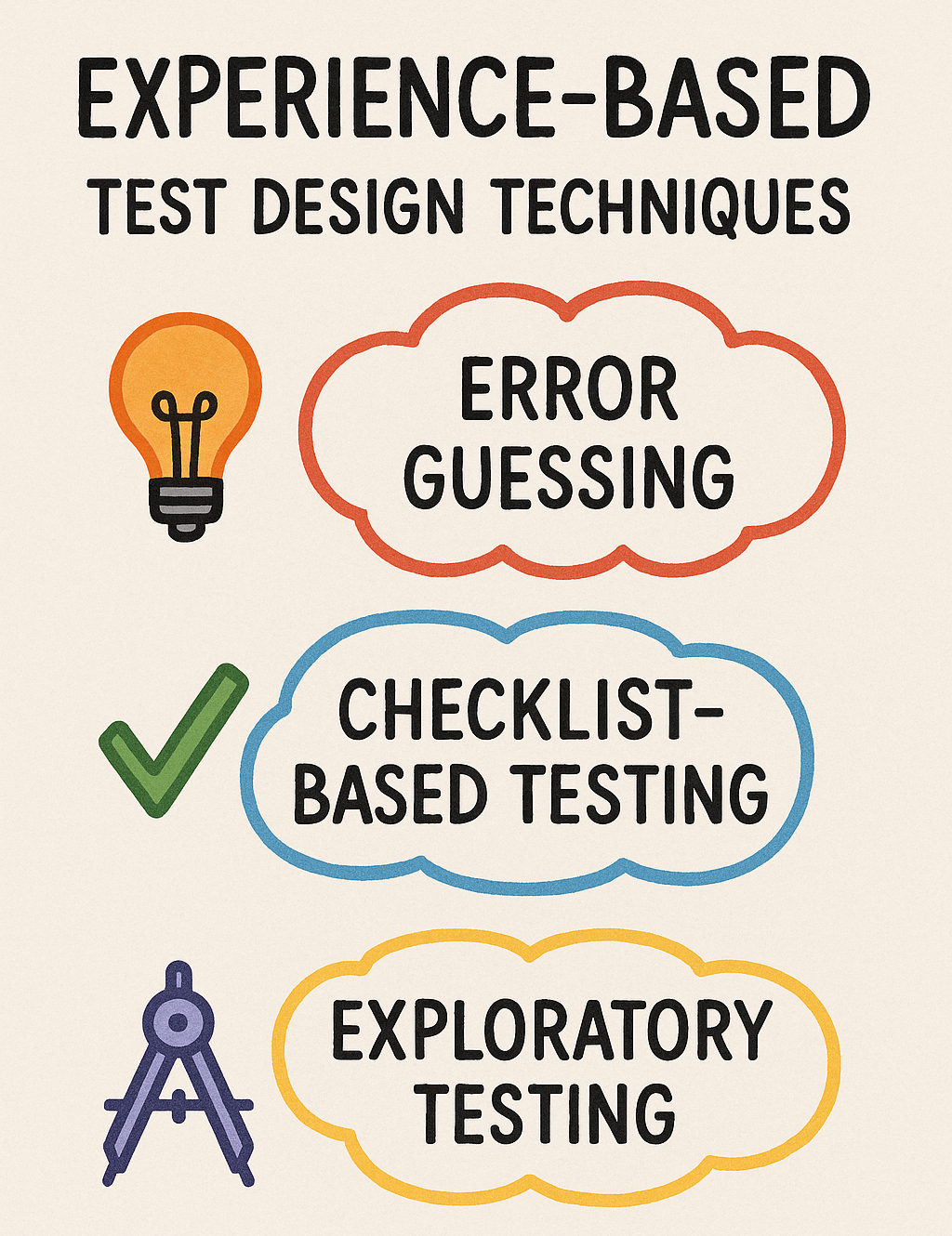 - Experience-based techniques leverage the tester’s experience, intuition, and knowledge of the software to design test cases. These techniques are less structured but valuable for finding defects that formal techniques may miss.